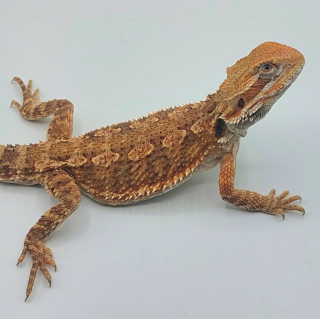 Este colorido Pogona, muestra características mixtas de ambas especies y resalta por su vigorosidad y por su carácter activo.